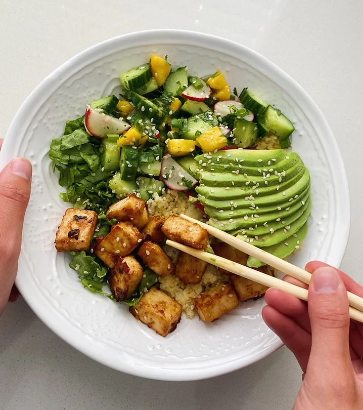 Spicy Tofu Bowl with Cucumber Salad