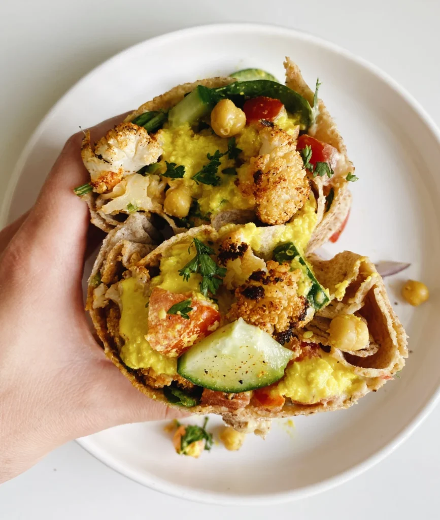 Roasted Cauliflower Chickpea Pita with Lemon-Tahini Dressing