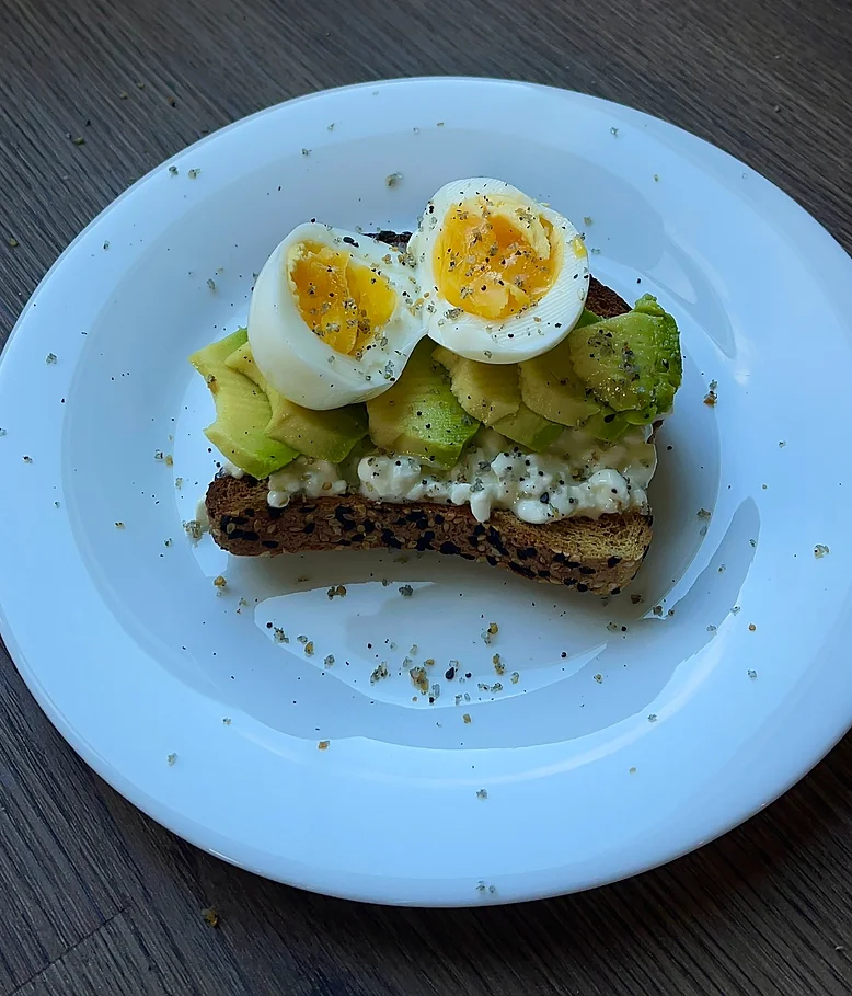 - Sprinkle a pinch of salt and pepper over the avocado and egg.